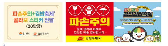 이는 전국으로 발송되는 샤인머스캣 우체국소포에 동 스티커를 부착하여 김밥축제