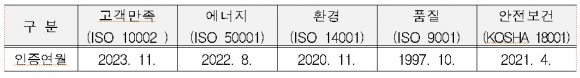 한국도로공사는 국제표준화기구(ISO)가 제정한 부패방지 경영시스템(ISO 37001)과 규범준수 경영시스템(ISO 37301) 인증을 취득했다고 밝혔다. ※ 한국도로공사 경영시스템 인증현황