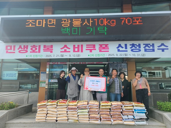 김천시 조마면 소재의 광불사(대한불교조계종, 주지 혜원스님·속명 이종원)는 지난 19일 추석 명절을 맞아 어려운 이웃을 위해 사랑의 쌀 70포(170만 원 상당)를 조마면 행정복지센터에 기탁했다.