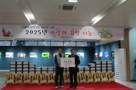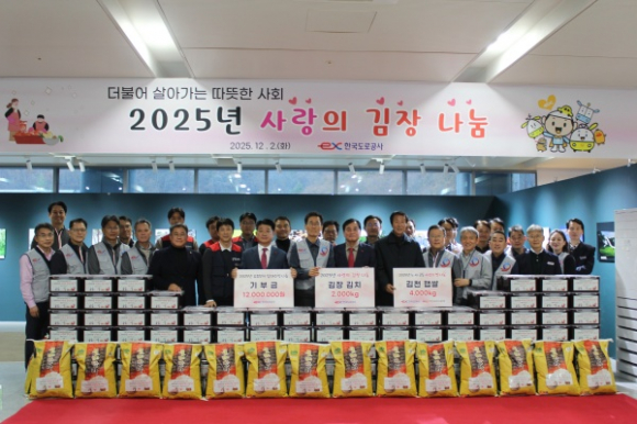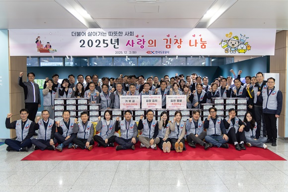 한국도로공사가 연말을 맞아 지역 이웃들을 위한 온정 나눔에 나섰다. 공사는 12월 2일 오후 4시 30분, 김천시 혁신8로 소재 한국도로공사에서 ‘사랑의 김장 및 백미 나눔’ 행사를 개최하며 겨울철 어려움을 겪는 저소득층 가정을 위한 나눔 활동을 펼쳤다.