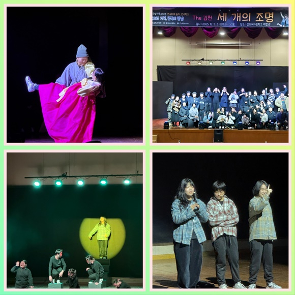 두 번째 공연 “세 개의 조명 The 김천”은 ‘극중극’ 형식을 활용해 연극 속에 또 다른 연극이 등장하는 독창적인 구조로 구성되었다. 학생들은 김천의 문화재와 특산물을 연극 제작 과정 속에 자연스럽게 녹여내 지역의 역사·문화적 가치를 알리는 데 큰 역할을 했다.첫 번째 공연 경험을 토대로 성장한 배우들은 한층 안정된 연기력과 캐릭터 표현력을 보여주며 관객들의 큰 호응을 이끌어냈다.