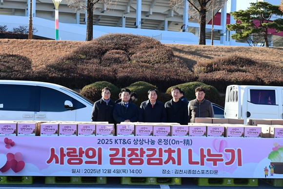 ‘사랑의 김장나누기’는 KT&G 김천공장이 후원하고 김천시지역사회보장협의체와 김천시장애인복지관이 공동 주관하는 대표적인 지역 나눔 사업으로, 올해는 저소득층 830세대(읍면동협의체 290세대, 사회복지시설 36개소 540세대)에 가구당 10kg의 김장김치를 지원해 총 5,000만 원 상당의 나눔이 이루어졌다.