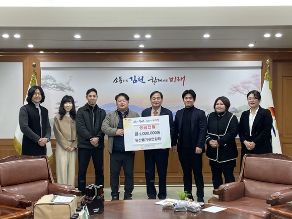 김천시농산물가공연합회(회장 김동하)는 지역 사회로부터 받은 사랑을 순환하고 ‘소통하는 김천, 함께 여는 미래’ 만들기에 동참하고자 12월 4일, 김천복지재단에 200만 원의 성금을 기탁했다.