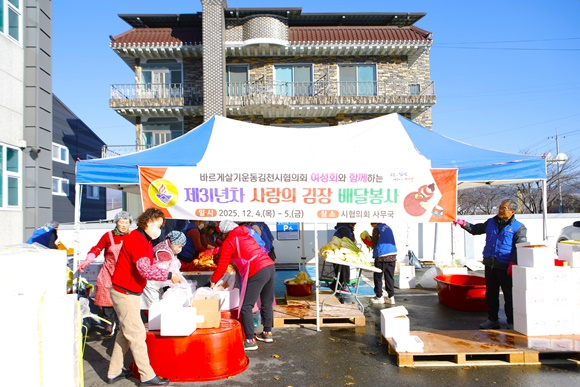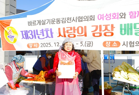 바르게살기운동김천시협의회 전정에 모인 40여 명의 회원들은 첫째날 김장 양념재료 손질을 마쳤으며, 이튿날에는 본격적인 김장 담그기에 나섰다. 정성스럽게 버무려 포장된 김장김치 500포기는 지역 내 홀몸 어르신, 사회복지시설 등에 전달되었으며, 회원들은 직접 김치를 전달하며 이웃들의 안부를 묻고 어려움을 듣는 등 지역사회 돌봄의 역할도 병행했다.