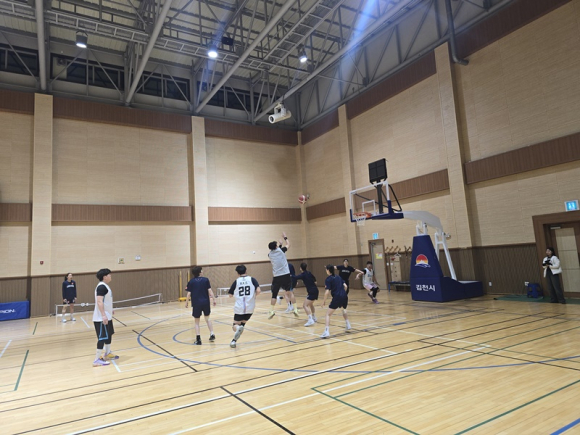 여자농구단 선수들은 도민체전에 참가하는 남자 일반부 선수 10여 명과 실전 경기를 펼쳤으며, 포지션별 맞춤형 기술 지도와 실전 전술 노하우를 전수하며 경기력 향상을 위한 소중한 시간을 가졌다.
