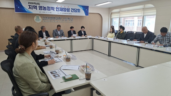 김천생명과학고등학교(교장 정해봉)는 2026년 4월 21일 교내에서 김천시농업인단체협의회 회장 안종복, 한국여성농업인 김천시연합회 회장 김창희, 김천포도회 회장 이은수 등 16개 농업인 단체가 참석한 가운데 ‘영농 정착 인재 양성 간담회’를 개최했다. 이번 간담회는 지역에 정착하는 청년 농업인을 양성하기 위한 교육 방향을 공유하고 학교와 지역 간 협력 방안을 모색하고자 마련됐다.