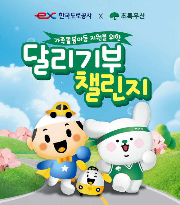 도로공사는 ‘달리기부 챌린지’를 통해 기부금을 조성하고, 초록우산은 전달받은 기부금이 가족돌봄아동 50가구의 생계‧교육‧의료 등에 투명하게 사용될 수 있도록 협력할 예정이다.