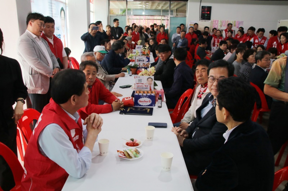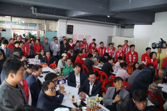 이날 개소식에는 송언석 의원을 비롯해 지역 주민 등 지지자 3000여 명이 참석한 가운데 열렸으며, 이철우 경북도지사 예비후보도 참석해 국민의힘 ‘원팀’을 강조했다. 이 후보는 “국민의힘이 하나로 힘을 모아야 할 때”라며 “배낙호 후보가 김천 발전을 이끌 적임자”라고 말하며 힘을 보탰다.