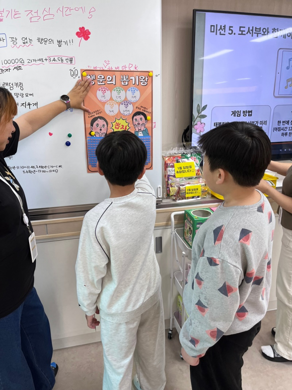 행사 기간 동안 학생들이 활동지를 가지고 하루에 하나씩 미션을 수행하며 자연스럽게 도서관 활동에 참여하도록 운영된다. 미션은 도서 대출하기를 시작으로, 그림책「책 청소부 소소」원화를 감상하고 나에게 소중한 말을 적어보는 활동, 책을 읽고 퀴즈를 풀어보는 활동, 나만의 도서 대출증 만들기, 도서관 관련 단어로 즐기는 박자놀이 등으로 구성되어 있다. 또한 2025년에 구독한 잡지를 자유롭게 가져가 볼 수 있는 나눔 활동도 함께 마련되어 학생들에게 또 다른 즐거움을 더한다. 학생들은 이 가운데 세 가지 미션을 완성하면 행운의 뽑기에 참여할 수 있어 참여의 재미와 성취감을 함께 느낄 수 있다.